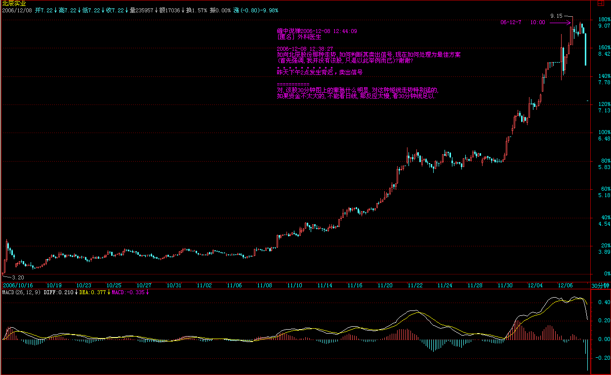 如向北辰股份那种走势,如何判断其卖出信号,现在如何处理为最佳方案(首先强调,我并没有该股,只是以此举例而已)?谢谢?