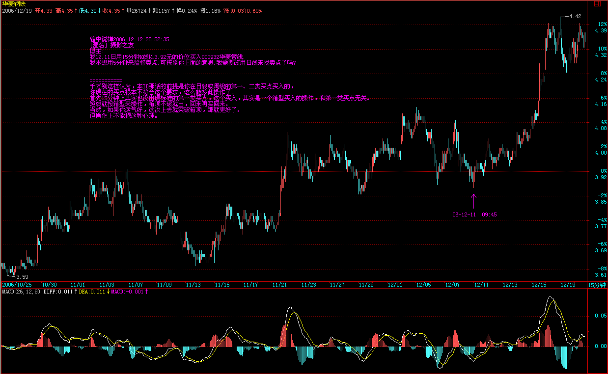 以后多看回帖,因为在回帖里,很多文章说不到的事情都会说到,还有些特别的问题。本ID的作业,一定要自己搞清楚,像580991的情况,研究透了,对用MACD判断背驰就有把握了。