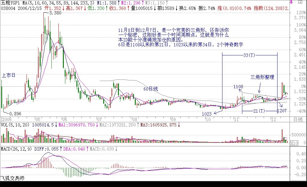 三角形的判别不看均线,直接看图形。11月8日到12月7日,是一个完美的三角形,还告诉你一个秘密,这刚好是一个时间周期点。这就是为什么本ID能十分准确地加仓的原因。几个因数都结合在一切了。